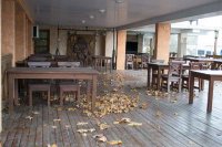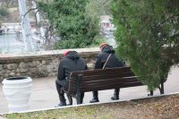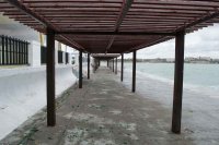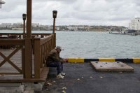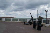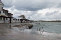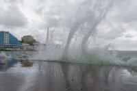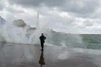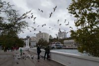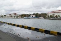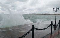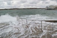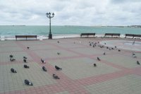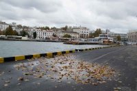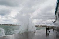 В бухтах штормит. Довольно сильный северо-западный ветер, по данным метеостанции – 20-25 м/с. Народ фотографируется на фоне разбивающихся о набережную волн. Не всем удается остаться сухими.